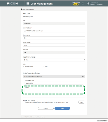 For details about "Edit User" screen, see Operation Guide/General Setting Management.